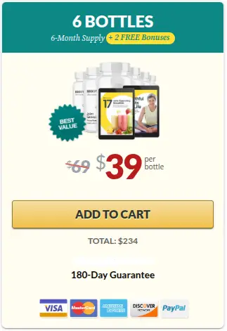 • Regardless of the package you choose today, you are protected by our 6-month money-back “empty bottleguarantee.